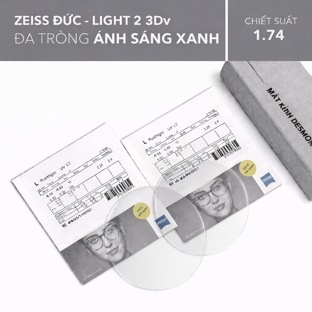 ĐA TRÒNG CHỐNG ÁNH SÁNG XANH ZEISS LIGHT 2 3DV BLUEGUARD 1.74