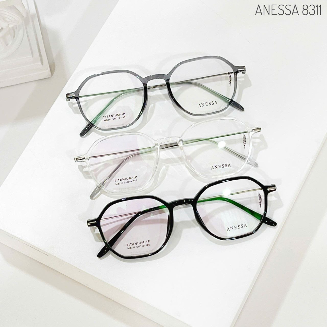 Gọng kính ANESSA 8311 mang thiết kế dáng đa giác bo tròn nhẹ, tạo cảm giác hiện đại nhưng vẫn mềm mại và thanh lịch, phù hợp cho cả nam và nữ.