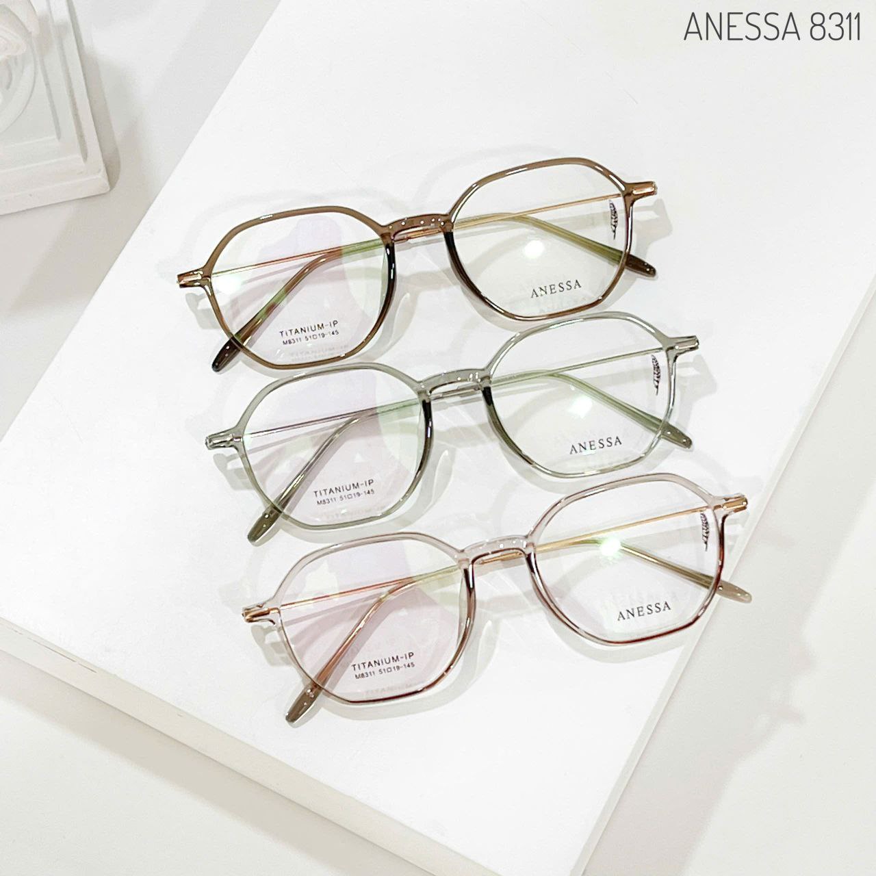 Gọng kính ANESSA 8311 mang thiết kế dáng đa giác bo tròn nhẹ, tạo cảm giác hiện đại nhưng vẫn mềm mại và thanh lịch, phù hợp cho cả nam và nữ.