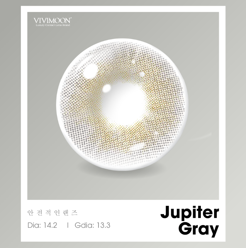 Được lấy cảm hứng từ ngôi sao Mộc thanh thuần, Jupiter Gray sử dụng tone màu là xám pha ánh vàng để tạo nên sắc lens. Màu xám sẽ được sử dụng ở bên ngoài còn bên trong là những ánh vàng lấp lánh tạo độ sâu hun hút cho đôi mắt. Cùng với những đường chấm màu độc đáo như hình gợn sóng tạo nên nét đẹp kiêu kỳ, lấp lánh cho ánh mắt.