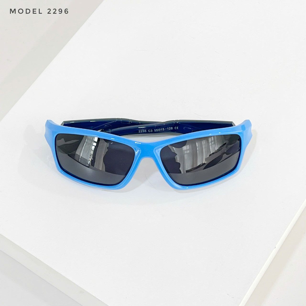 Model 2296 có nhiều màu sắc nổi bật như đen, xanh dương, đỏ, giúp bé dễ dàng lựa chọn theo sở thích, vừa bảo vệ mắt vừa tạo điểm nhấn thời trang.