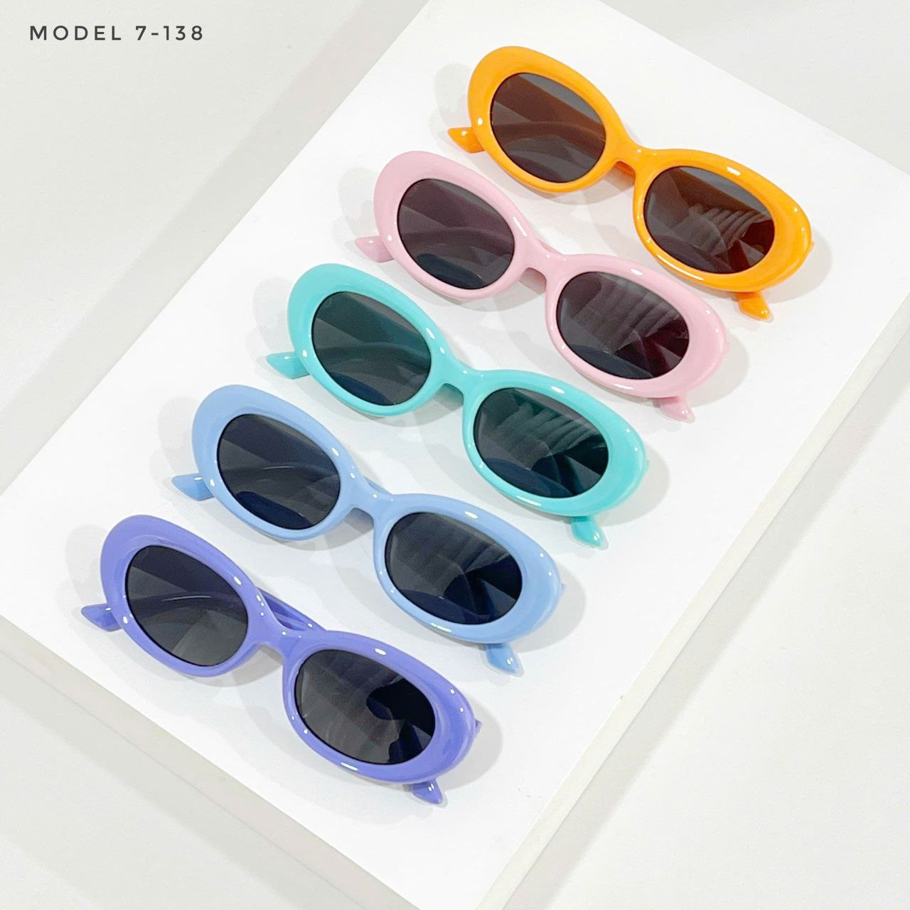 Kính râm trẻ em Model 7-138 có nhiều màu sắc pastel dễ thương như vàng, hồng, xanh ngọc, xanh pastel và tím, giúp bé dễ dàng lựa chọn theo sở thích cá nhân. Đây là sản phẩm lý tưởng để bảo vệ mắt bé mỗi ngày và hình thành thói quen đeo kính râm đúng cách từ sớm.