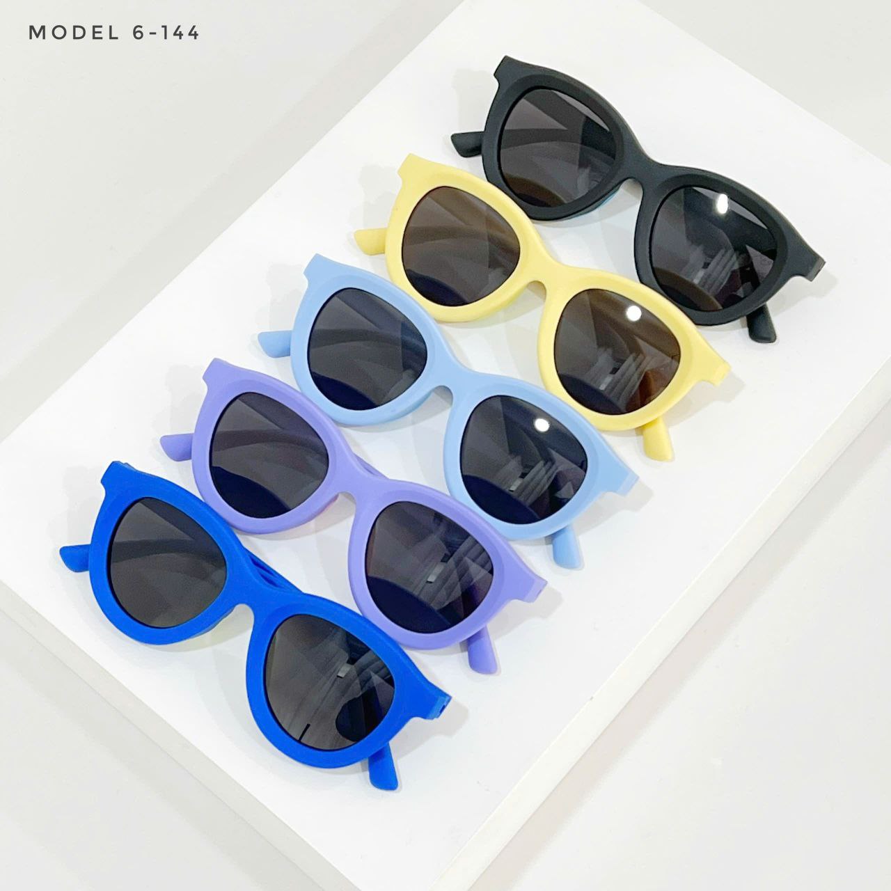 Kính râm trẻ em MODEL 6-144 được thiết kế với dáng tròn bo mềm đáng yêu, màu sắc tươi sáng như đen, vàng, xanh pastel, tím và xanh dương, giúp bé thêm năng động và tự tin khi ra ngoài.