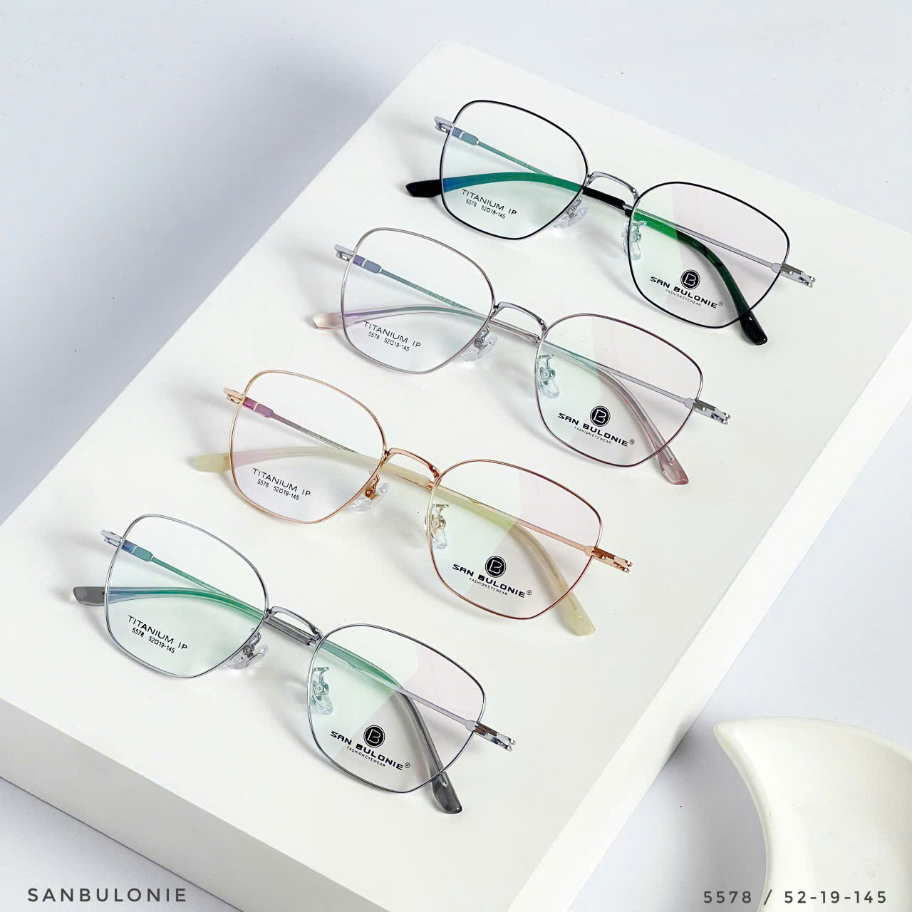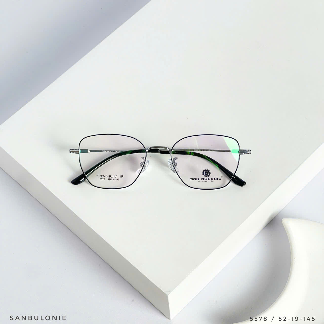 Kính SANBULONIE Titanium 5578 là mẫu gọng cao cấp dành cho khách hàng yêu thích phong cách tối giản nhưng tinh tế. Được làm từ Titanium IP siêu nhẹ, gọn và thoải mái, phù hợp đeo suốt cả ngày mà không gây nặng hay đau sống mũi.