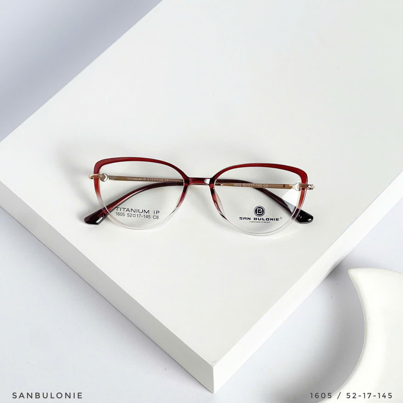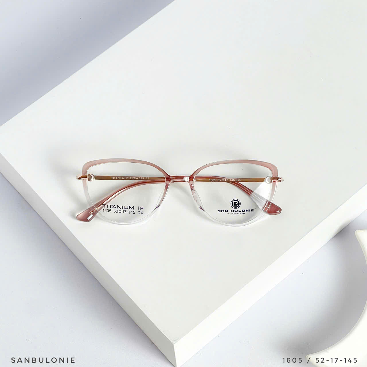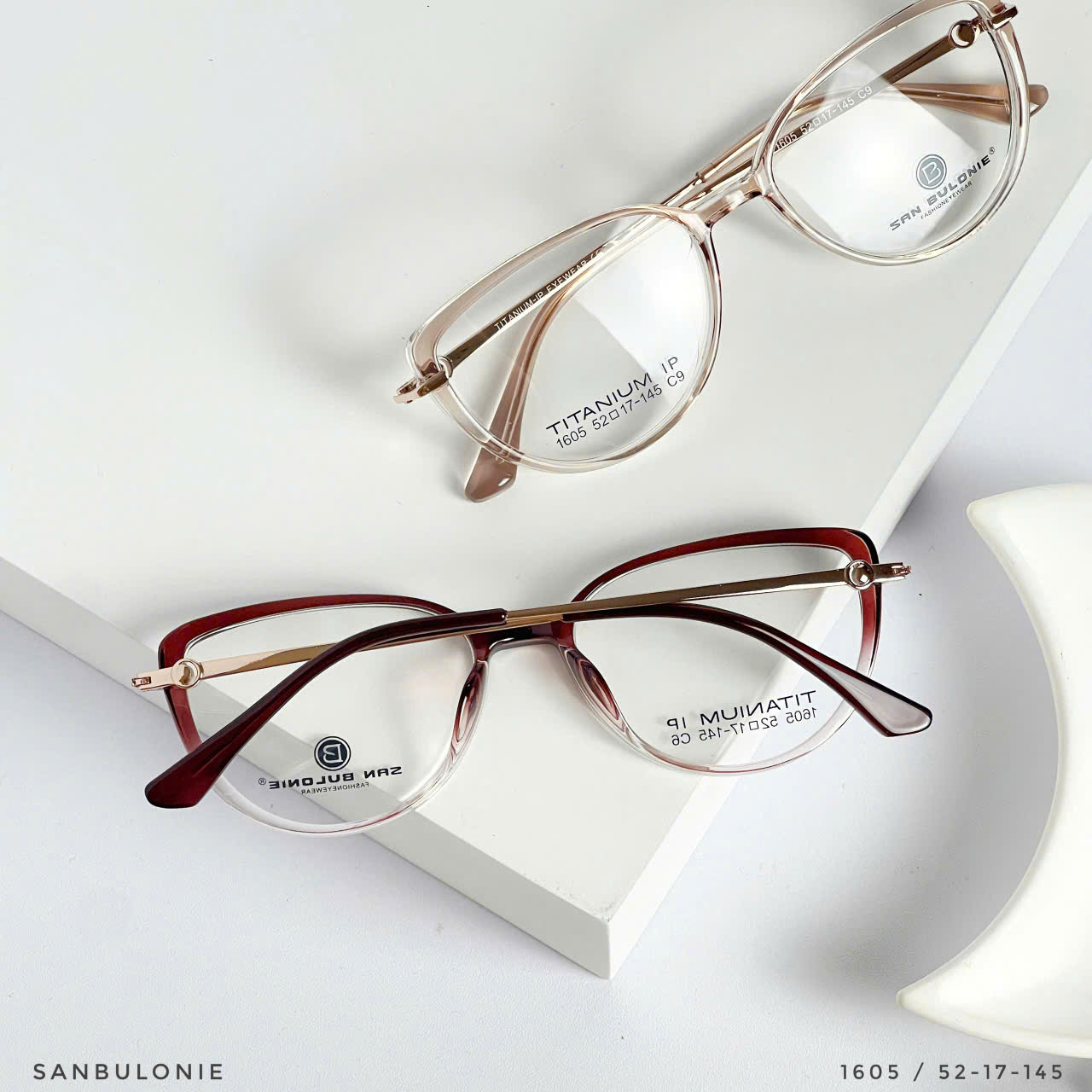 Kính mắt SANBULONIE 1605 là lựa chọn hoàn hảo cho những ai yêu thích sự nhẹ – bền – sang. Gọng được làm từ Titanium IP cao cấp, trọng lượng siêu nhẹ, đeo lâu không bị nặng sống mũi. Thiết kế form mắt mèo hiện đại, ôm mặt đẹp, giúp tôn đường nét gương mặt và mang lại cảm giác trẻ trung, thanh lịch.