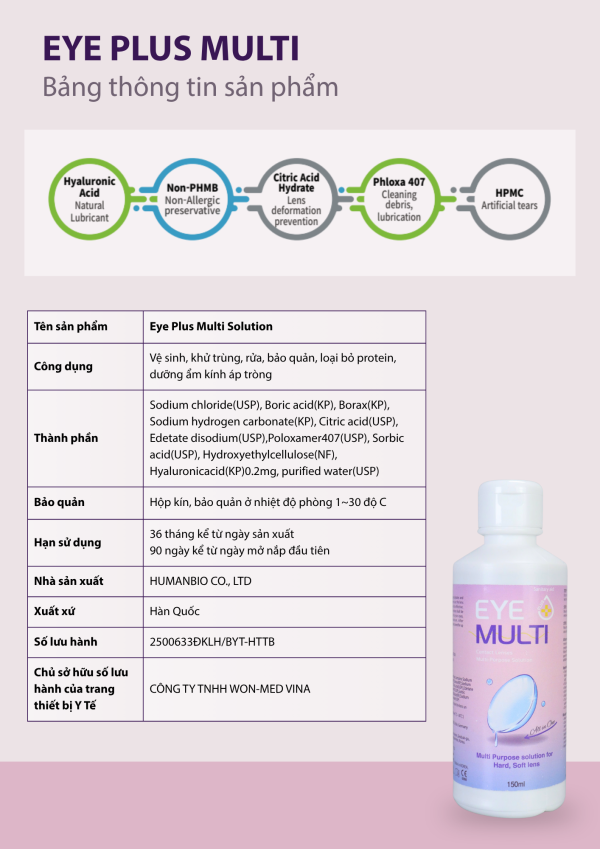 – Dung dịch ngâm rửa đa năng kết hợp 6 chức năng làm sạch – tráng – bảo quản – tẩy rửa – cấp ẩm – khử trùng kính áp tròng vô cùng thuận tiện