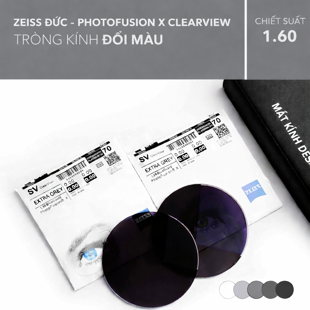 Zeiss PhotoFusion X ClearView là siêu phẩm kính đơn tròng đa nhiệm với công nghệ mới nhất của Đức. Vượt lên sự tiêu chuẩn với công nghệ FreeForm, bạn sẽ có được chất lượng quang học tuyệt vời cho đôi mắt của mình – 1 tầm nhìn rõ ràng từ trung tâm tròng kính đến ngoại vi, phẳng hơn, mỏng hơn và trông hấp dẫn hơn bao giờ hết.