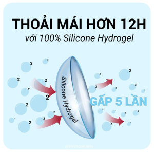 - Nguyên liệu Silicone Hydrogel cho oxy đi qua gấp 5 lần, giúp mắt “thở” dễ dàng hơn, đeo lens lâu hơn, êm ái hơn.